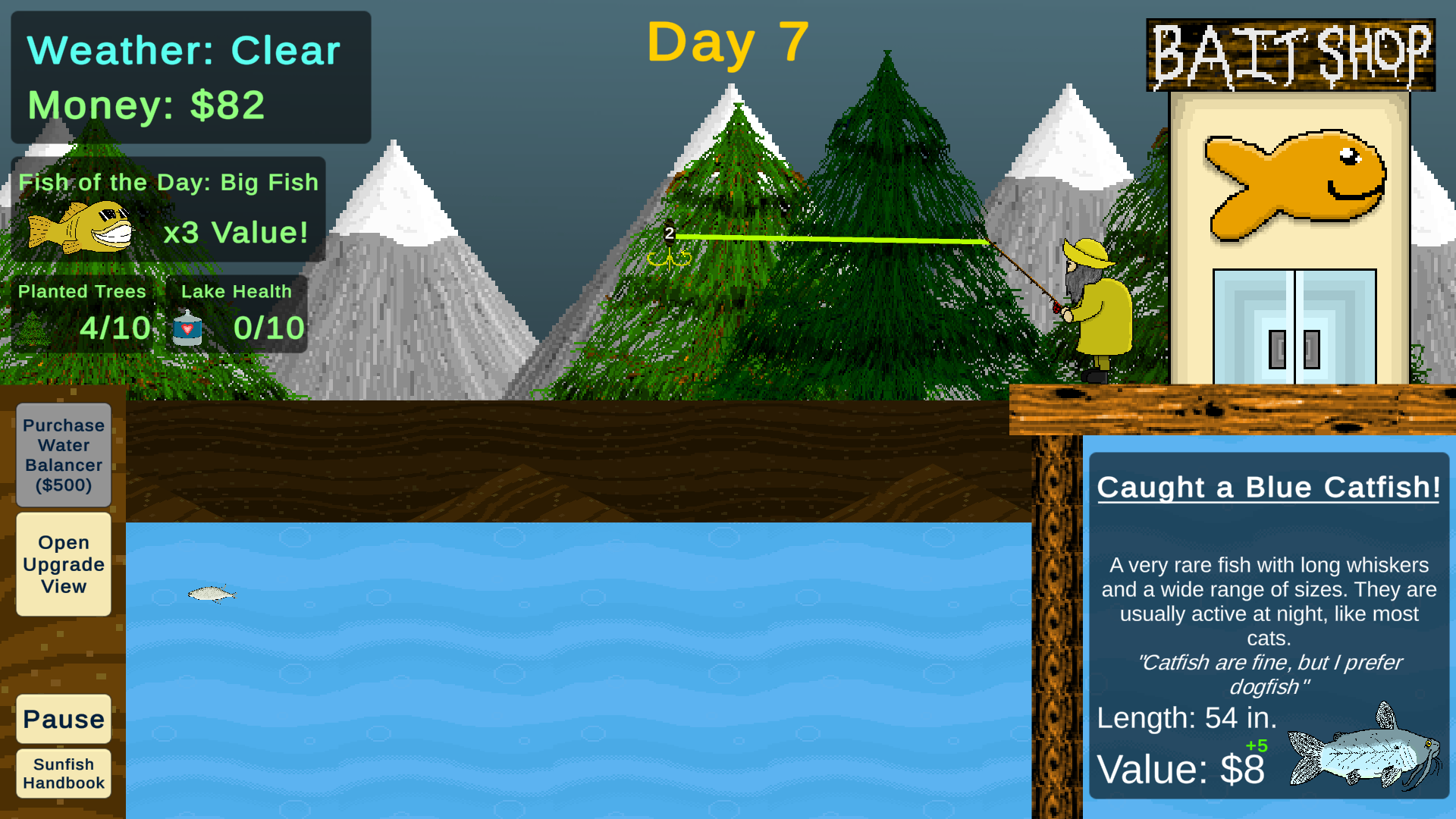 Sunfish is a clicker/roguelite about keeping your own pond healthy and filled! Charge up casts of your rod to hook the many types of fish that appear in your pond. Use the money earned to power up your rod, hook, lake, and more!